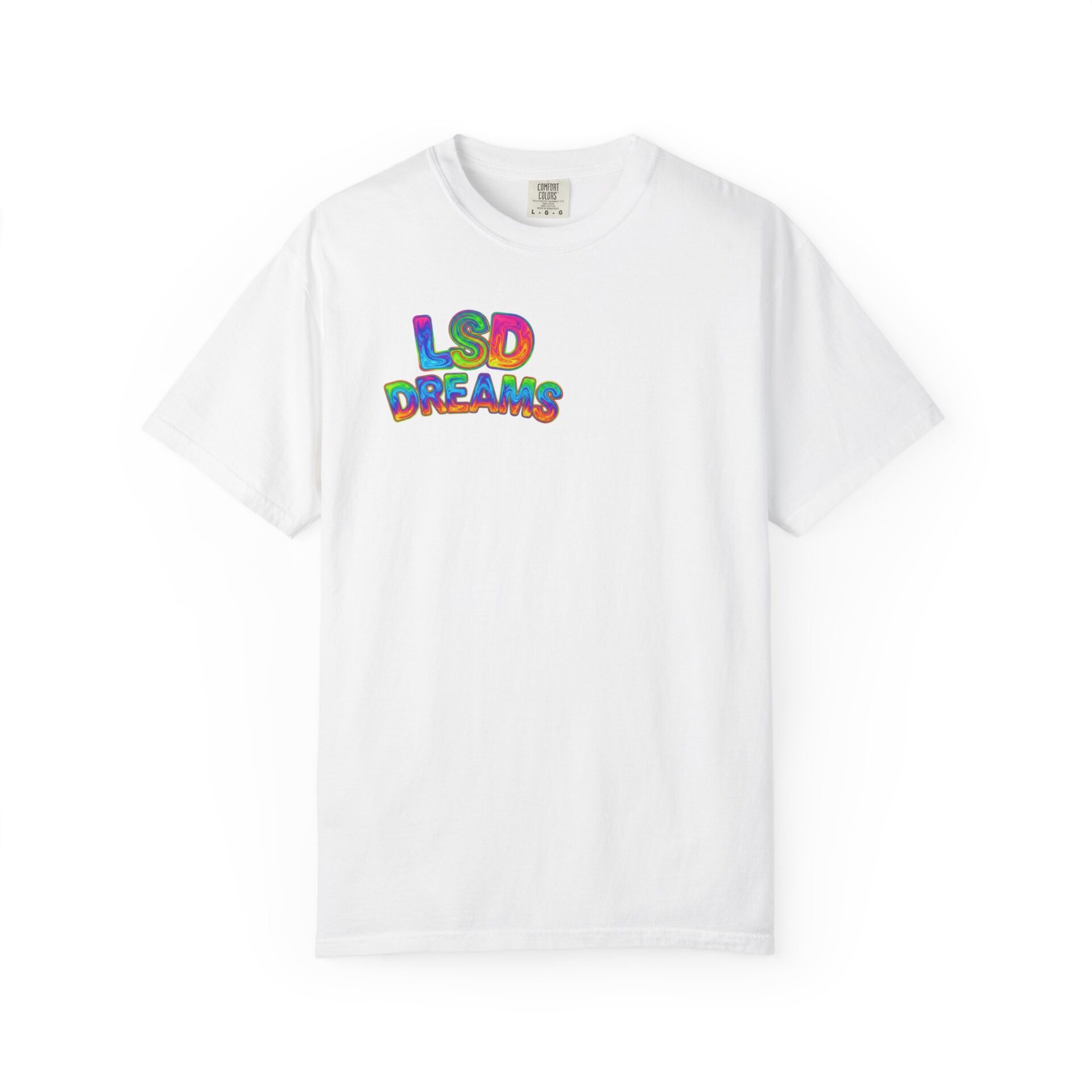 Step into a world of vivid color and imagination with this one-of-a-kind “LSD Dreams” T-shirt. The design features bold, swirling, liquid-like text bursting with a unique mix of vibrant, neon colors. This is more than just a shirt; it’s a piece of wearable art that captures a trippy, psychedelic vibe. Perfect for anyone who loves unique graphic tees and wants to add a bold statement to their wardrobe.